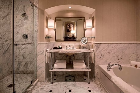 Nestled in the picturesque Ballantyne Community of Charlotte, North Carolina, The Ballantyne, A Luxury Collection Hotel, Charlotte offers an exceptional stay with world-class amenities and a serene atmosphere. Each room is designed to provide the utmost comfort with plush bedding, flat-screen TVs, and ten-foot ceilings that enhance the spaciousness. The marble-tiled bathrooms feature bathrobes, slippers, and premium bath products, ensuring a relaxing experience.