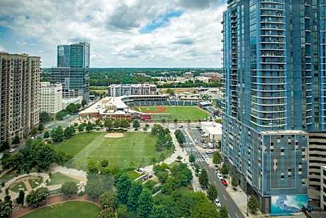 Set in the heart of Uptown Charlotte, this Kimpton hotel offers crafted cocktails and shareable bar snacks at Merchant & Trade, a Modern-style rooftop bar 19 levels above Romare Bearden Park. Shopping at Epicenter is 8 minutes' walk away. Nosh at the Italian-inspired American restaurant, Angeline's. Merchant & Trade also offers a indoor bar-lounge, outdoor terrace, and private terrace ideal for private events from 15 to 150 guests. Rooms and suites boast a flat-screen cable TV, a pillow-top mattress, and a Carrera marble bathroom with Atelier Bloem bath amenities. Kick back with a park view in some Kimpton Tryon Park Hotel suites. Personalized service extends to the 24-hour front desk. Soul-soothing outdoor yoga classes are hosted on the rooftop terrace and a full-service spa is available. The fitness center offers cardiovascular and strength training equipment. Blumenthal Performing Arts Center is 1312 feet from Kimpton Tryon Park Hotel, while Mint Museum of Craft Design is 1640 feet away. The nearest airport is Charlotte Douglas International Airport, 5.6 mi from the property.