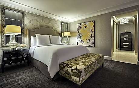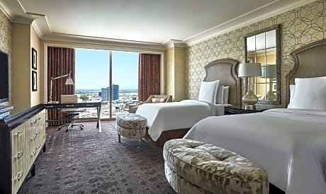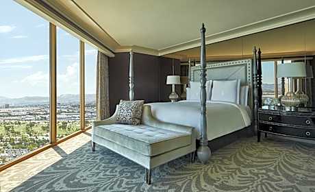 The rooms at Four Seasons Hotel Las Vegas boast floor-to-ceiling windows that frame breathtaking landscapes, alongside signature marble bathrooms and modern conveniences like flat-screen TVs and coffee makers. Each guestroom offers a haven of comfort, inviting guests to relax in style after a day of Las Vegas entertainment.