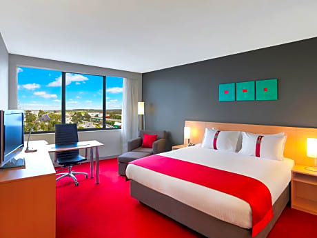 Located only 1312 feet from the airport terminals, Holiday Inn Melbourne Airport offers a shuttle service 24 hours.. Guests enjoy sound-proofed rooms, a fitness center, restaurant and bar. Paid on-site parking is available. WiFi is available through the property. All of the rooms at Holiday Inn Melbourne Airport feature a refrigerator and tea/coffee making facilities. They offer an LCD satellite TV, work desk and mini-bar. The hotel offers 24-hour room service and there are monitors in the lobby providing live flight information both day and night. The restaurant serves modern Australian cuisine and local wines and the bar offers drinks and coffee. Holiday Inn Melbourne Airport is close to a range of local attractions including Westfield Shopping Center, UrbnSurf and Essendon's DFO shopping complex are less than 15 minutes’ drive away. Holiday Inn Melbourne is 14 mi away from the center of Melbourne.