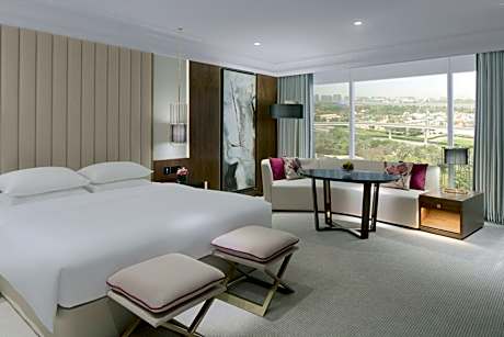 Grand Hyatt Dubai provides flawless service and all the necessary facilities for visitors. Should you require transportation to or from the airport, hotel is able to organize it prior to your arrival date. Experience the wonders of Dubai with ease by utilizing the services provided at car hire.Visitors can take advantage of the accessible parking options directly at the hotel. Reception services such as concierge service and luggage storage are available to accommodate your requirements. Should you desire access to the top entertainment in the city, assistance can be provided by the hotel's tours.Traveling with minimal baggage is achievable at Grand Hyatt Dubai, as the hotel's dry cleaning service and laundry service ensures your garments stay fresh.Room amenities feature daily housekeeping, allowing you to unwind and make the most of your visit.Each accommodation at Grand Hyatt Dubai is thoughtfully created and adorned to provide visitors with a comfortable, home-like atmosphere. In select rooms of the hotel, guests can enjoy the advantage of having blackout curtains available for their convenience.In select rooms, guests at the hotel can enjoy top-notch in-room entertainment with daily newspaper, television and cable TV available for their convenience.Rest assured, in a few chosen rooms, you will find the convenience of instant tea and mini bar at your disposal. Maintain your cleanliness and comfort using a hair dryer and toiletries available in select guest restrooms. Embark on your holiday experience in the most ideal manner. Commence each morning of your visit with an on-site breakfast. Should you prefer not to venture out for a meal, the enticing culinary choices at hotel are always available for your satisfaction.Experience an unforgettable evening with your fellow travelers just a short distance away, at hotel's bar.For those who prefer savoring meals within their personal space, Grand Hyatt Dubai offers the convenience of doorstep grocery delivery, allowing you to prepare and enjoy food in your room. Indulge in the numerous pursuits available at Grand Hyatt Dubai. Unwind after your day by exploring the salon and find warmth and relaxation.Bypass the formal attire and choose a laid-back mixed drink or brew at hotel's waterside lounge.