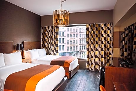 This Tribeca hotel welcomes you with a complimentary glass of champagne on the weekends and offers free WiFi. Canal Street underground station is 1588 feet away. All rooms at The Roxy Hotel Tribeca have a work desk and a seating area. Bathrobes and complimentary toiletries are provided. The rooms also come with a flat-screen cable TV. The Roxy Bar & Lounge features an 8-story atrium and serves modern American cuisine for breakfast, lunch and dinner. The Bar & Lounge offers up DJs and live entertainment. Guests can borrow iPads and iPods free upon request or enjoy films in the 118-seat private screening room. A 24-hour fitness room and concierge are on site. Free-use bicycles during the warmer months allow guests to explore the surrounding area. Washington Square Park is 1.2 mi away and Times Square is 3.1 mi away. The 9/11 Memorial is 0.7 mi from The Roxy Hotel Tribeca.